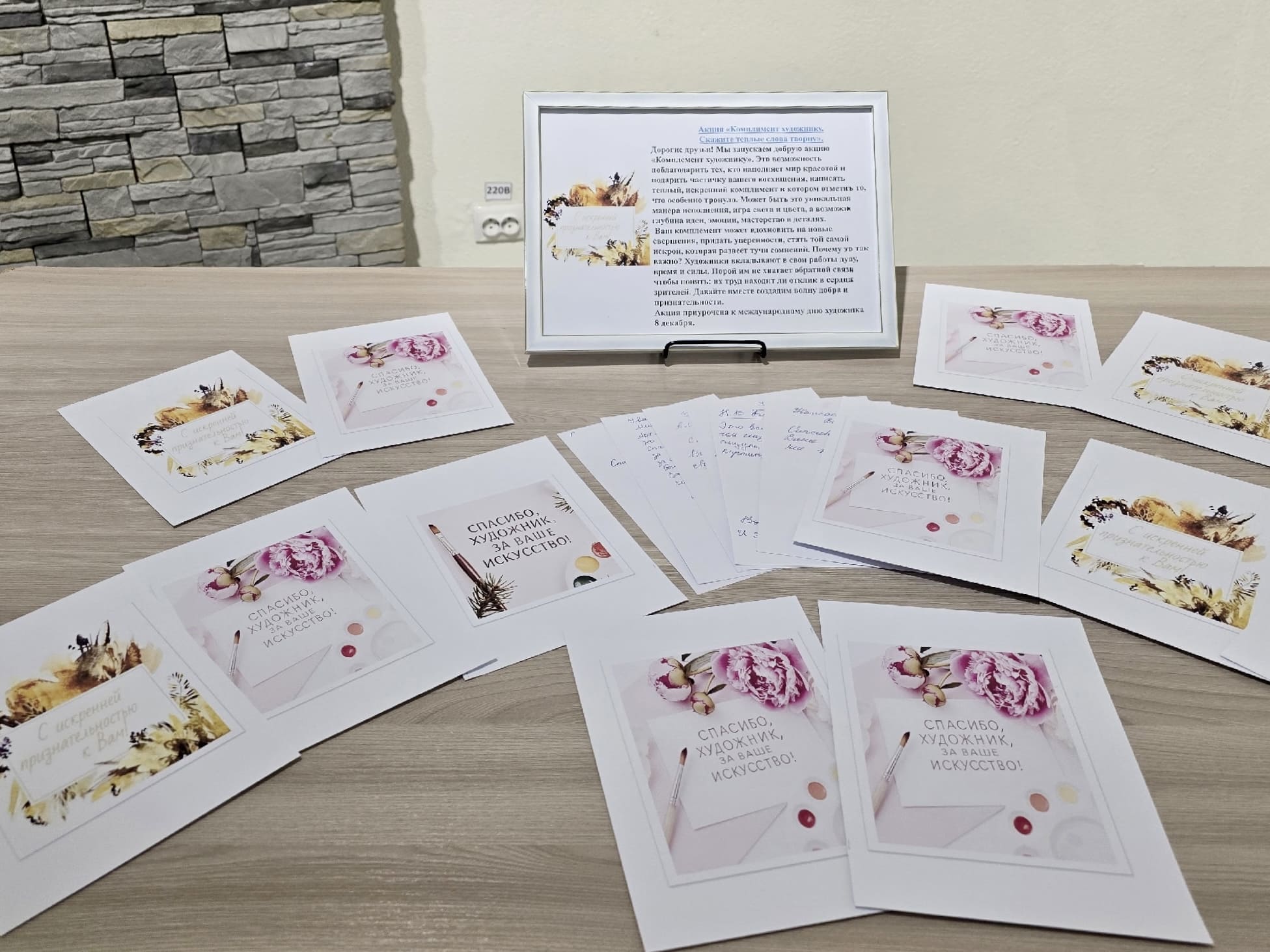 Акция направлена на поддержку мастеров, которые вкладывают в свои работы время, силу и душевную энергию. И порой им действительно не хватает отклика зрителей — тех самых нескольких фраз, которые подтверждают: искусство находит путь к людям и продолжает жить.